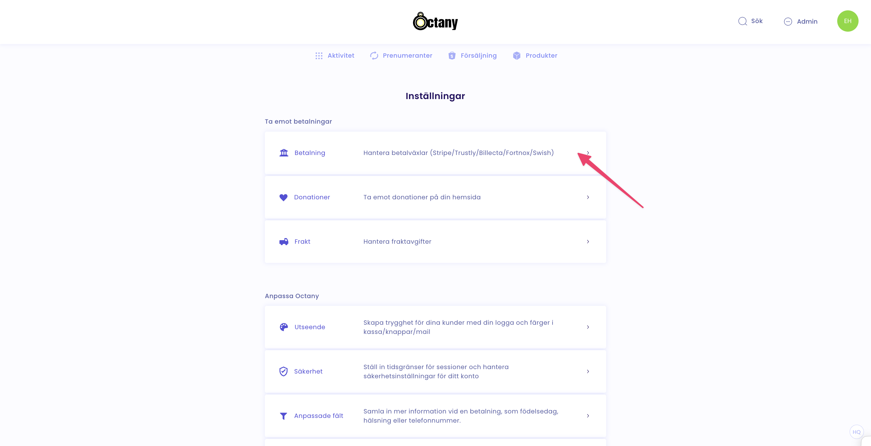 Aktivera de betalsätt ni vill ha