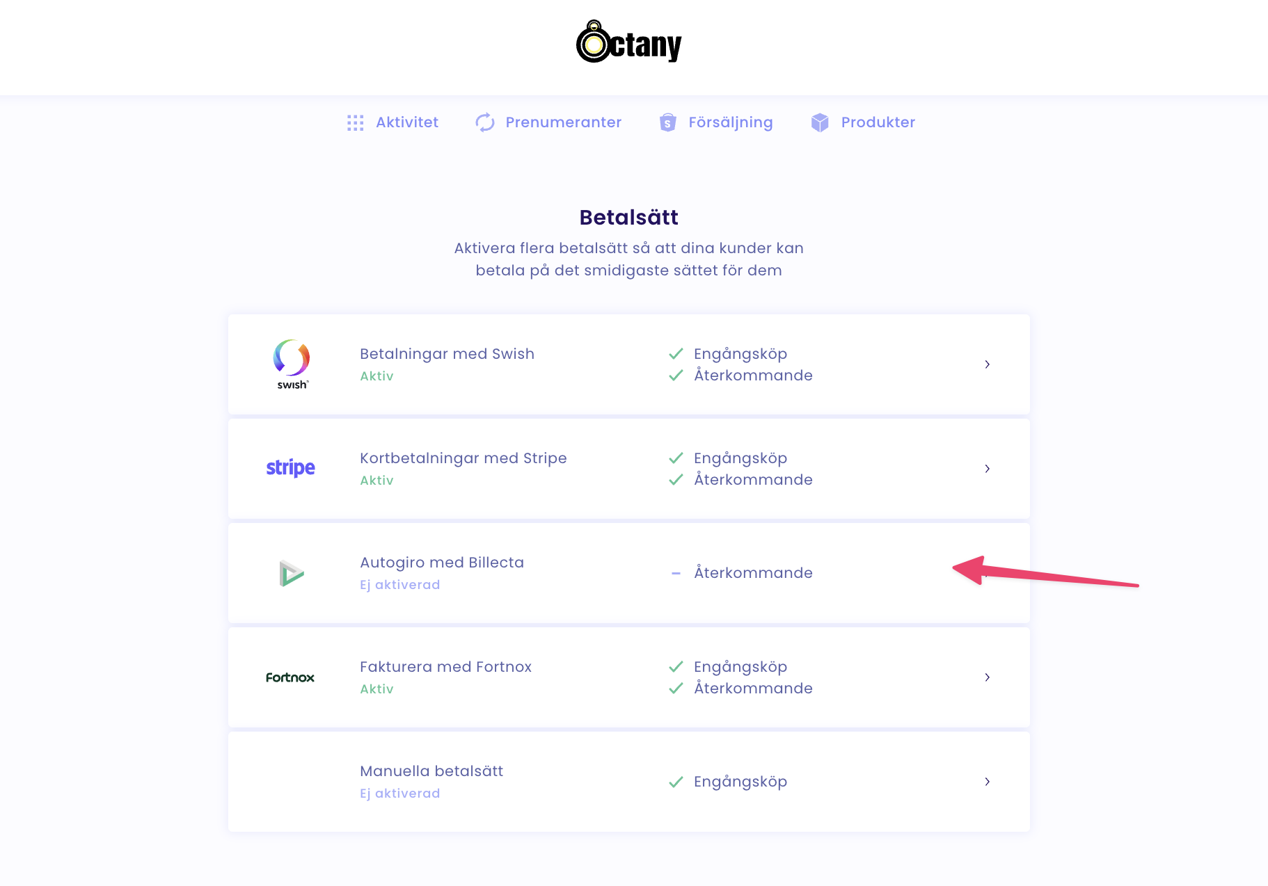 Se Octany som en dirigent. Skaffa bara de avtal ni behöver. Vi har stöd för kortbetalningar, Autogiro, Swish och faktura. Se vidare för att komma igång med varje betalmetod.