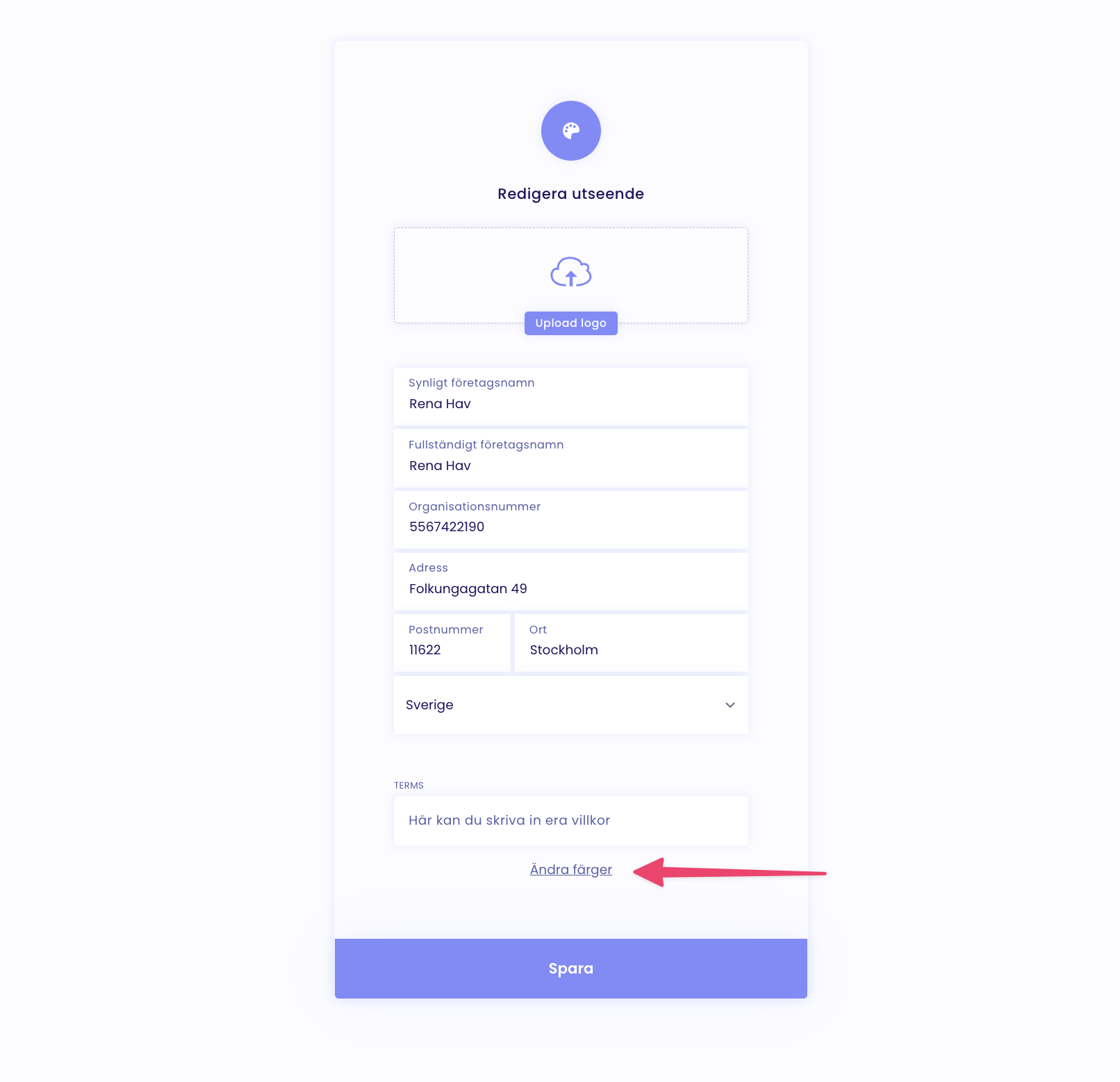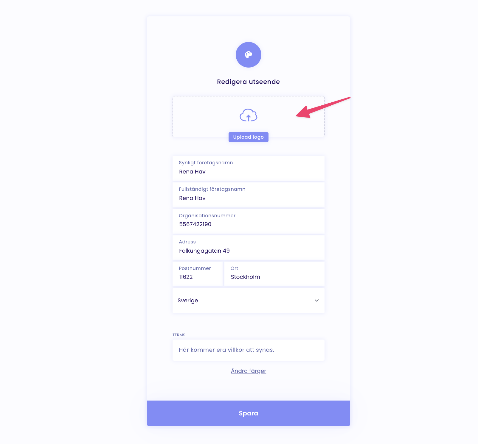 3. Sätt logotyp, villkor och färger 👈 Här är vi nu!