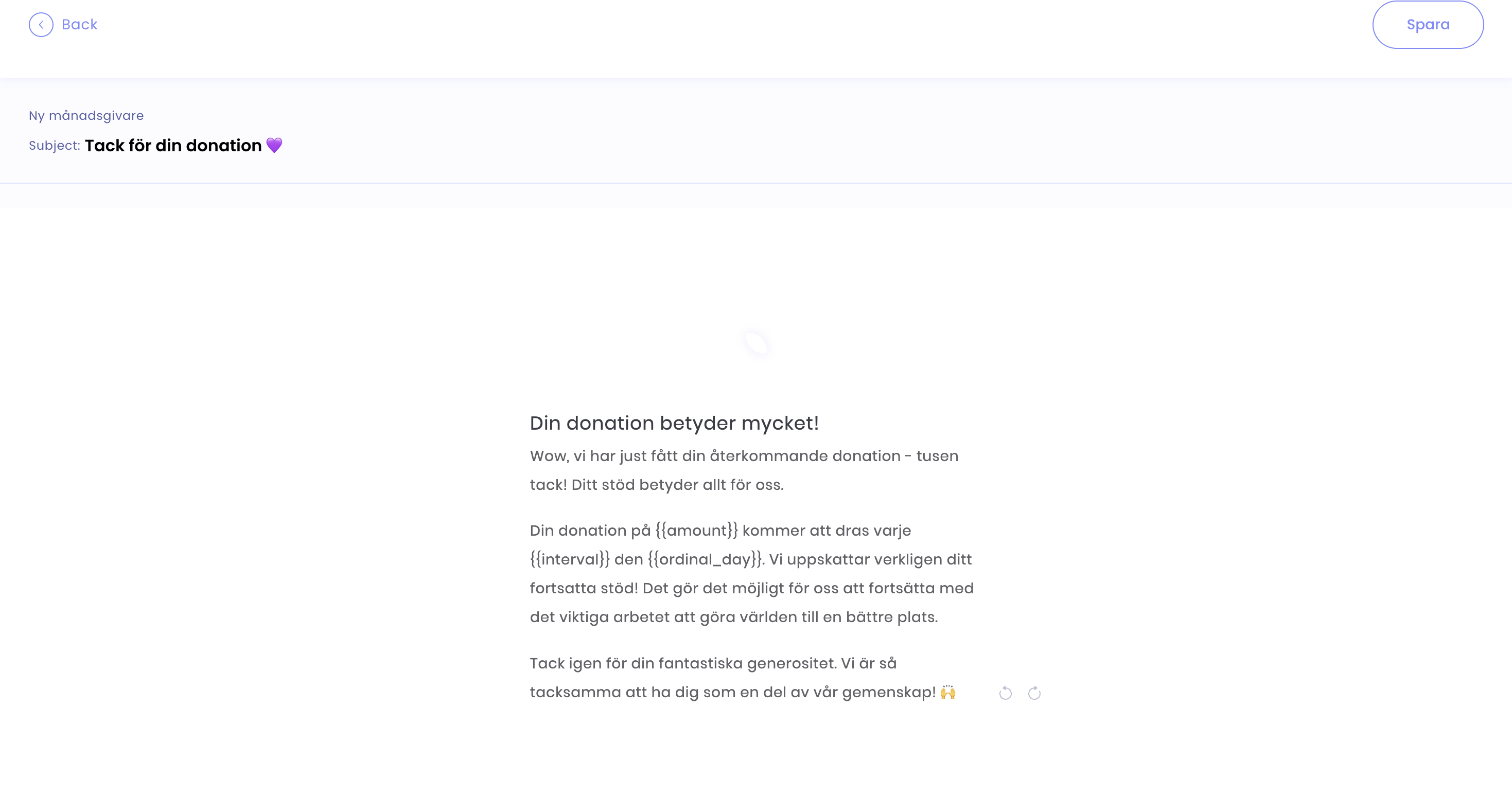 Du kan också lägga in dynamiska parametrar, vilket gör att du kan skapa personliga mail till varje unik givare.