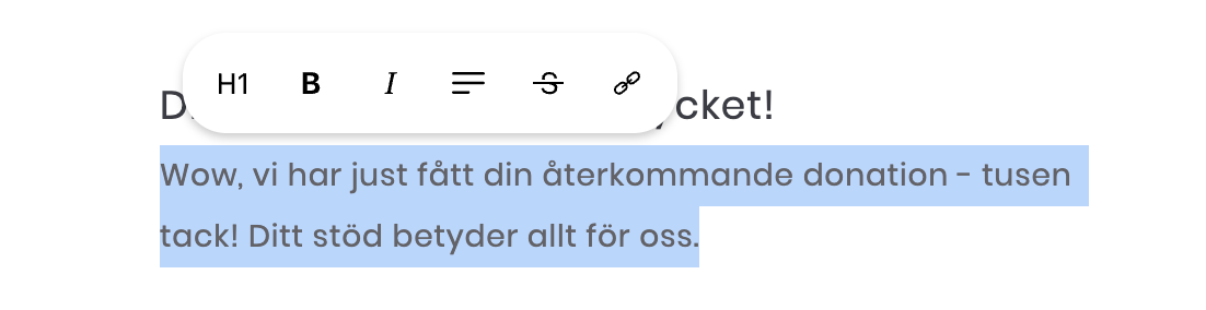 Du kan också formattera innehållet i mailet genom att markera texten du önskar att formattera. Här kan du exempelvis ändra rubriker, fetstil, kursiv eller lägga in en länk direkt i mailet.