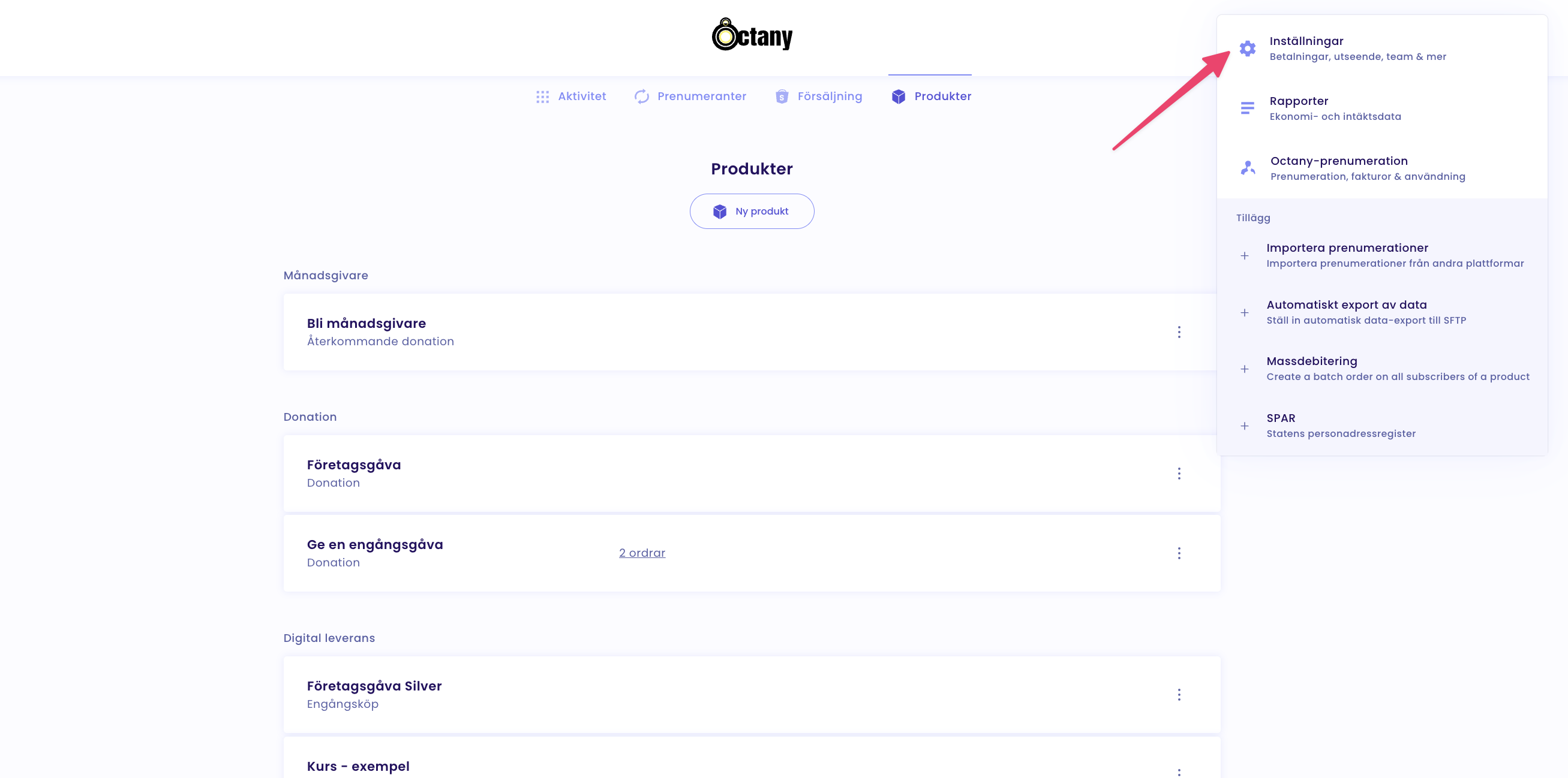 Lägga in Octanys gåvowidget