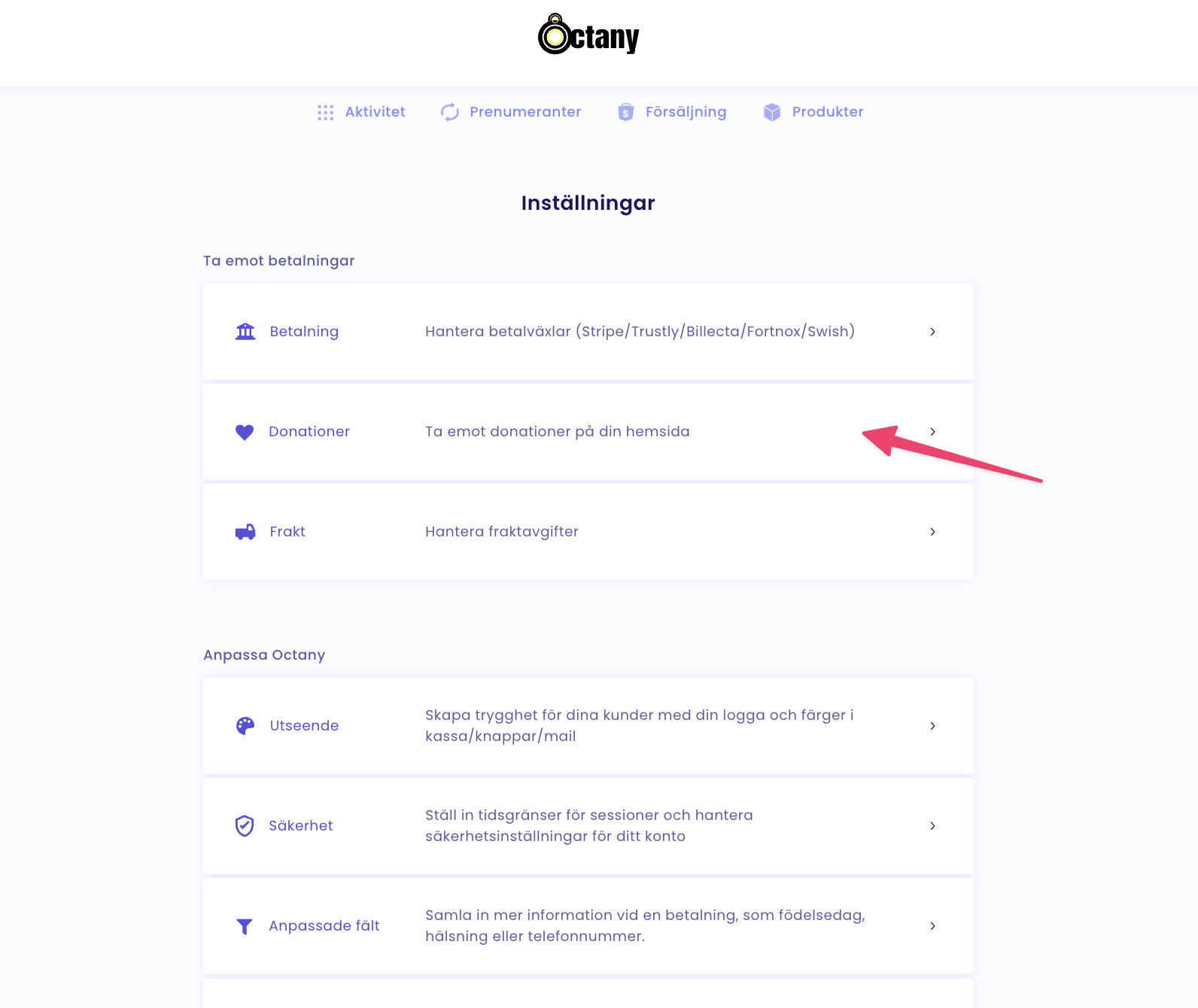 Gå in på Donationer - Ta emot donationer på din hemsida