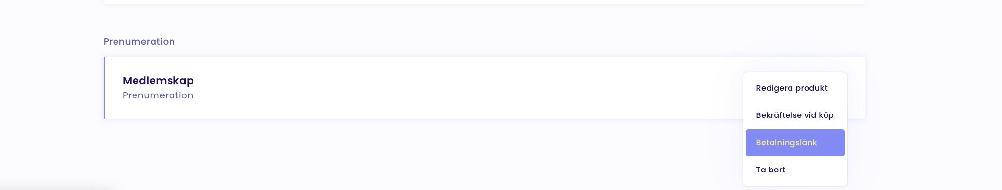Den hittar du genom att gå in under Produkter och därefter välja vilken produkt du vill lägga in och välja Betalningslänk